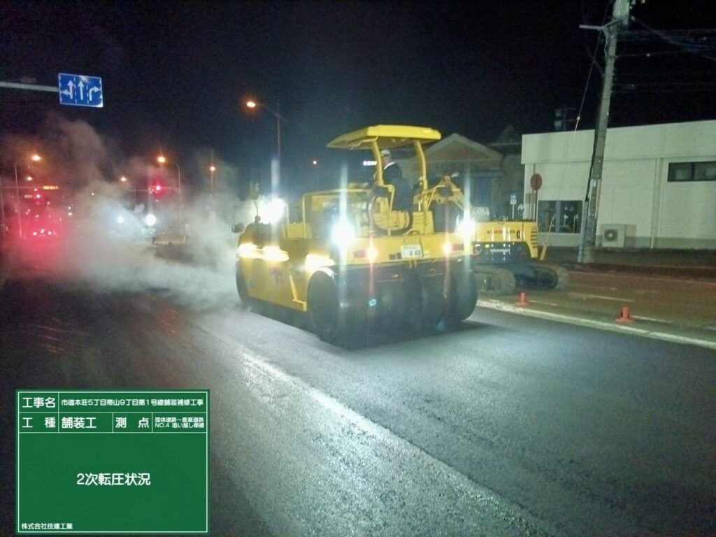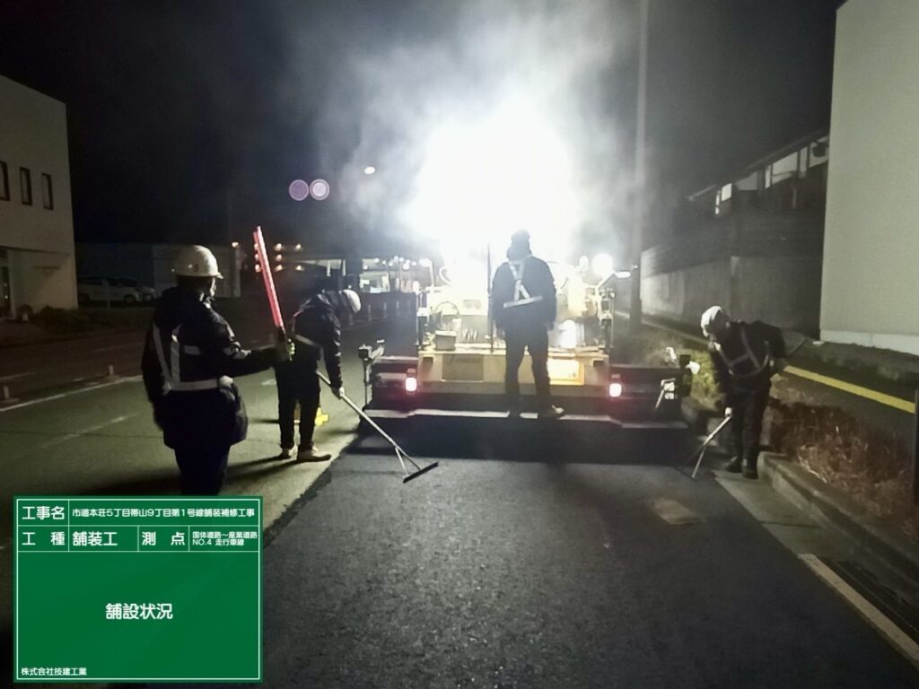 本工事の施工は切削オーバーレイ工法と言い、摩耗によりわだち掘れが生じた古い舗装表面をある程度削り、その上に新たな舗装を5cm敷きならす工事です。