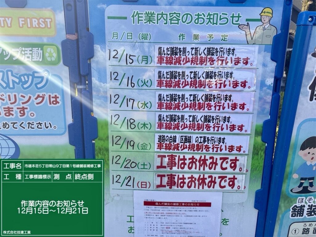 ご通行中の皆様、近隣にお住まいの皆様にはご迷惑をお掛けいたしますが、ご理解とご協力の程、宜しくお願い申し上げます。